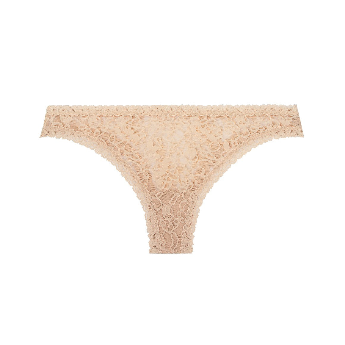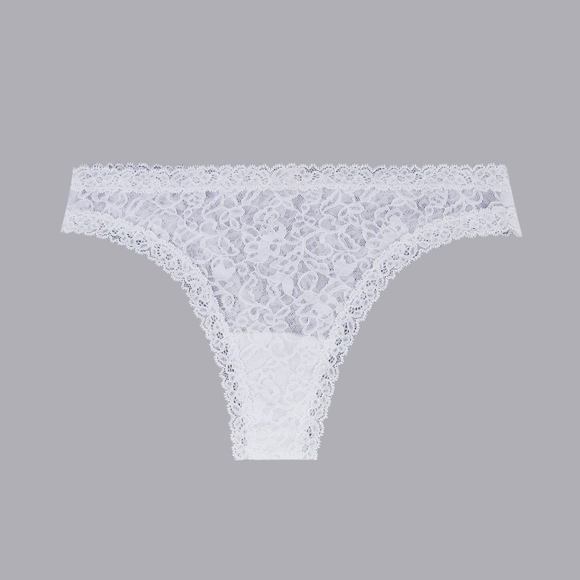 Panty juvenil con talle bajo y cobertura tipo brasilera. elaborado de encaje y con puente inferior de algodón para mayor frescura.