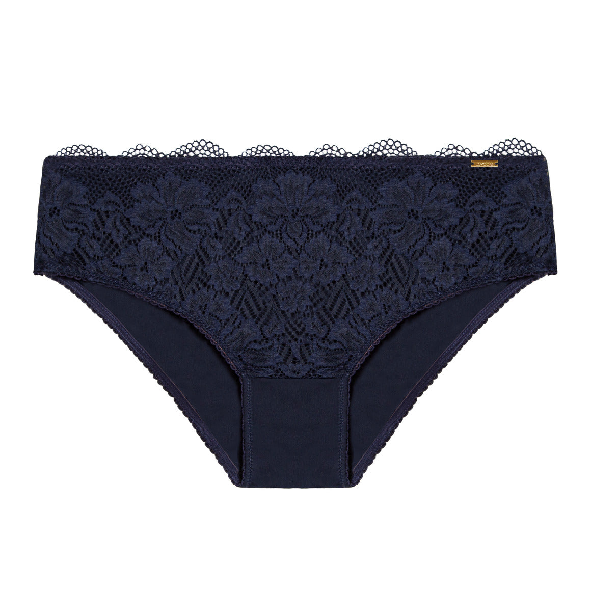 Panty con talle medio y cobertura completa. elaborado de microfibra con encaje en la parte frontal, elástico decorado en cintura y piernas para un mejor ajuste. puente inferior de algodón.