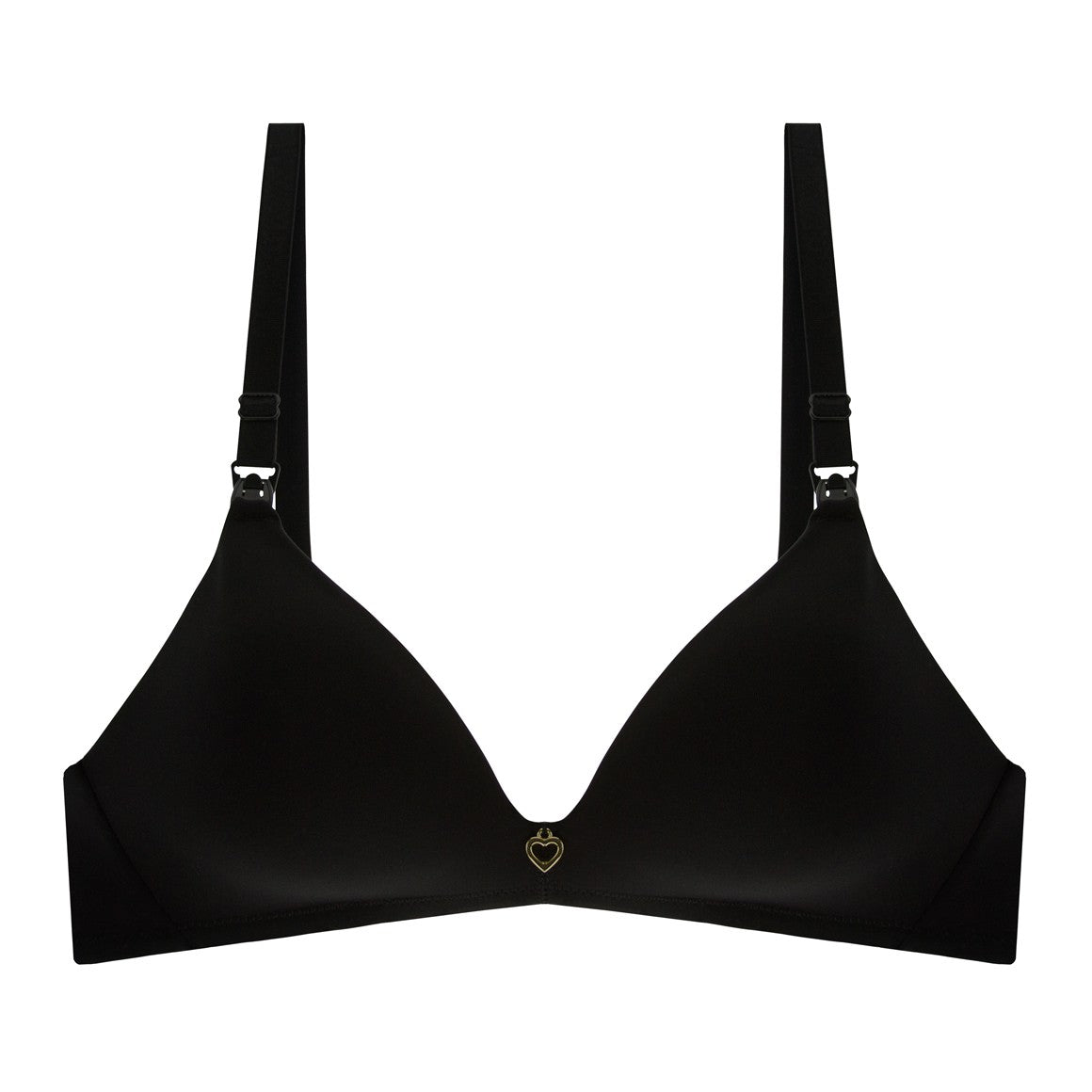 Brasier maternal sin aros, copas prehormadas sin realce. banda angosta reforzada con doble tela y elástico escondido. broche de dos ganchos y tres niveles de ajuste, con tirantes regulables. elaborado de microfibra y algodón en los contornos laterales internos de las copas. con broches en la parte superior de cada copa, que permite dejar el busto libre para la lactancia.