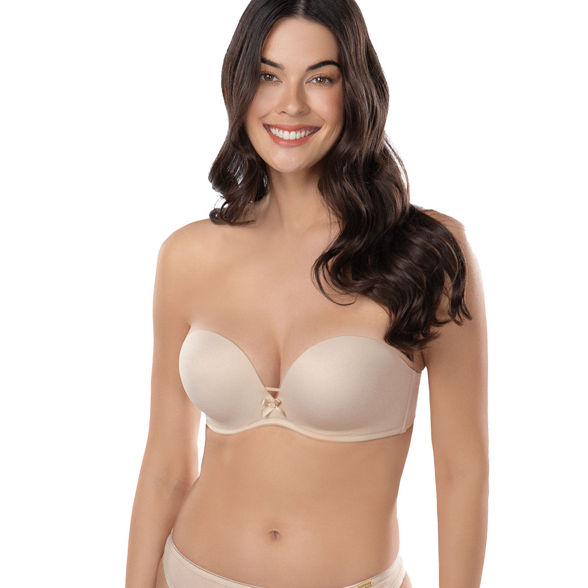 Brasier strapless con aros escondido y copas prehormadas con doble realce