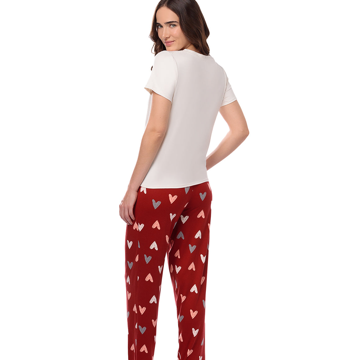 Pijama de dos piezas, elaborado con tela de poliéster suave. blusa cuello en v con mangas. pantalón largo con cintura elástica para un mejor ajuste.