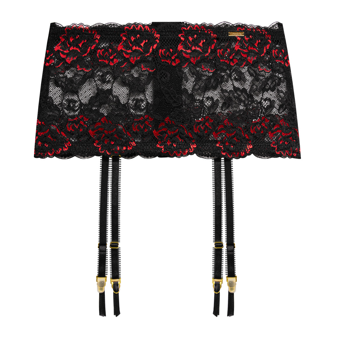Liguero elaborado de encaje con broche de nueve ganchos y dos niveles de ajuste. elástico en cintura para mejor ajuste. ligas regulables y clip de presión para sostener las medias.