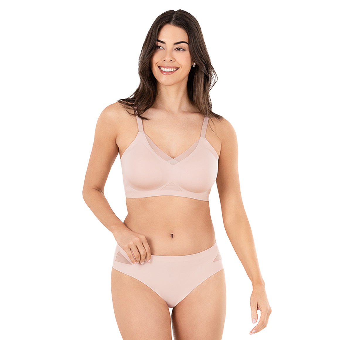 Brasier diseñado para ofrecerte total libertad de movimiento. su escote en v realza el busto con discreción, mientras que las copas prehormadas sin realce (sin push up) y removibles proporcionan un soporte suave. sin aros, pero con varillas laterales para mayor soporte. elaborado de microfibra con acabados sin costuras en las orillas para un efecto invisible bajo la ropa. el detalle en tull en la parte frontal añade un toque moderno y delicado. cuenta con banda media, broche de tres ganchos y cuatro niveles de ajuste que aseguran un ajuste perfecto durante el dña. con tirantes regulables, es la opción ideal para quienes buscan un brasier ligero, cómodo y elegante.