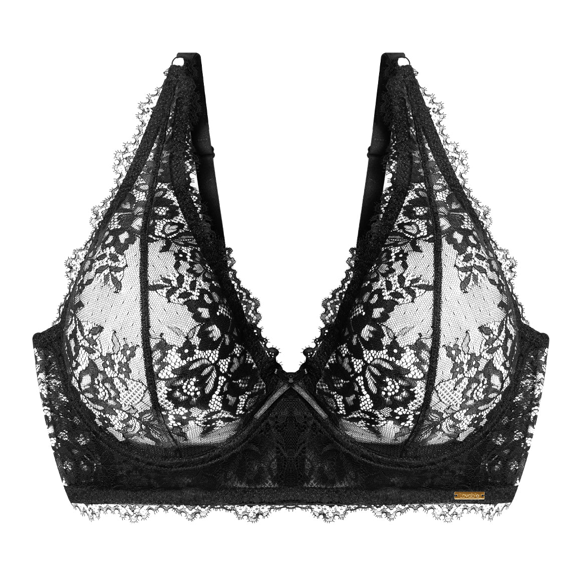 Bralette con aros. banda ancha con elástico en las orillas para un mejor ajuste. broche de cinco ganchos y tres niveles de ajuste. tirantes regulables que se pueden cruzar en x en la espalda. elaborado de encaje en copas y powernet en banda.