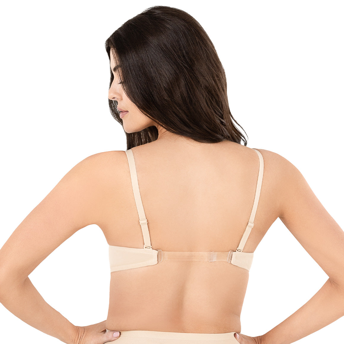 Brasier con aros con escote en forma de u y copas prehormadas con realce leve (push up leve). cuenta con dos bandas removibles y regulables. tirantes regulables que se pueden cruzar en x en la espalda. elaborado de microfibra. ideal para escotes profundos.