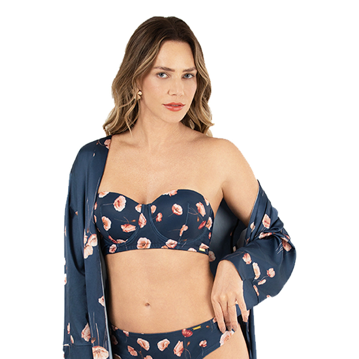Brasier con aros, copas prehormadas sin realce (sin push up). banda media con elástico en las orillas y varillas laterales. broche de cuatro ganchos y cuatro niveles de ajuste. tirantes regulables y removibles para un uso strapless. elaborado de microfibra con refuerzo de tricot en la parte frontal.