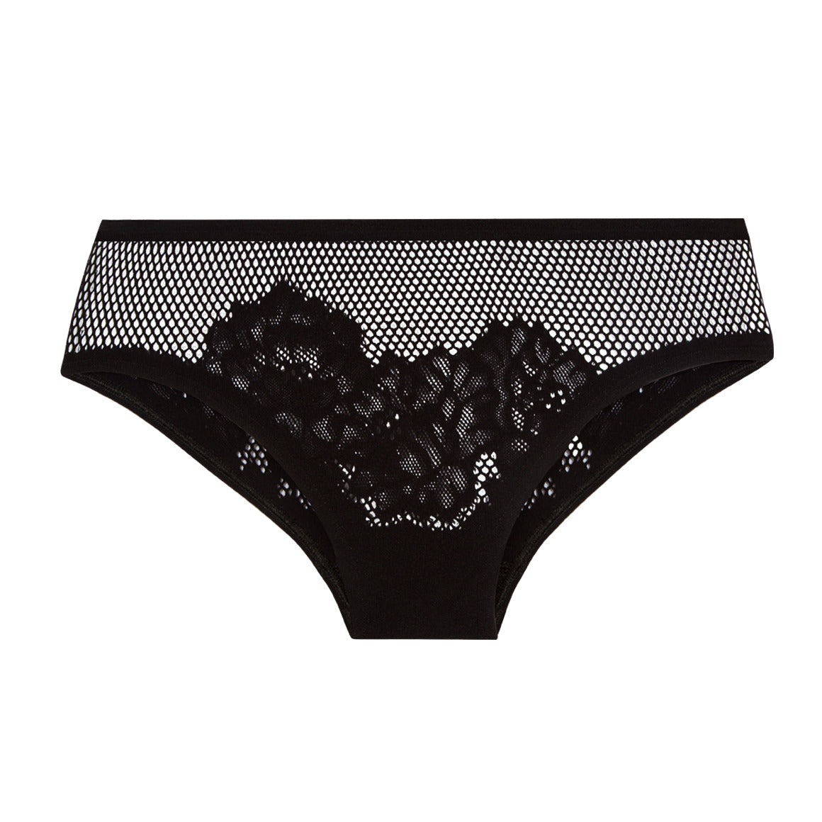 Panty con talle bajo y cobertura media. elaborado con tela de malla de elastano.