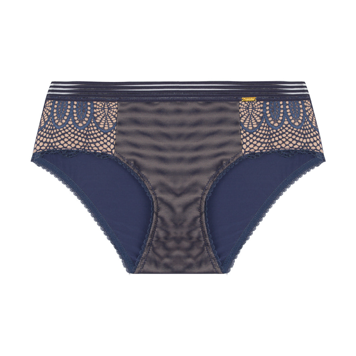 Panty con talle medio y cobertura completa. elaborado de microfibra, con encaje y tul en la parte frontal, elástico decorado en cintura y pierna para un mejor ajuste. puente inferior de algodón.