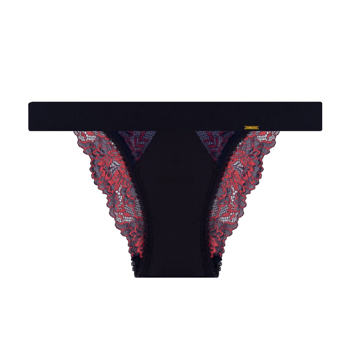 Panty con talle medio, cobertura media y escote de pierna alta. elaborado de encaje en la parte posterior, microfibra frontal con detalles de tricot a los lados, elástico ancho en cintura y elástico decorado en piernas, para un mejor ajuste. puente inferior de algodón.