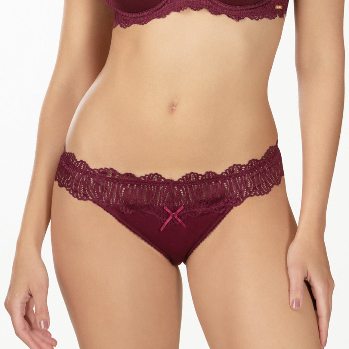 Tanga con talle bajo. elaborado de microfibra, encaje en la cintura y elástico decorado en piernas para un mejor ajuste. puente inferior de algodón.