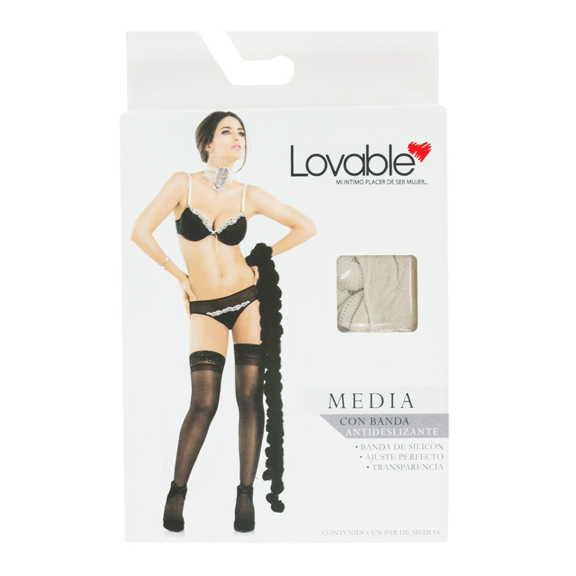 Medias que cubren hasta la mitad de la pierna. elaborado de poliamida y spandex, con detalles de encaje en la parte superior que incluye silicón antideslizante.