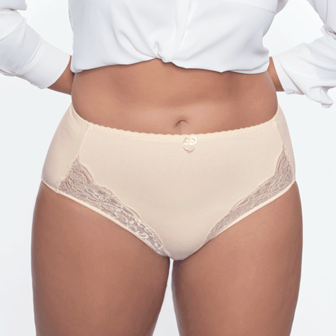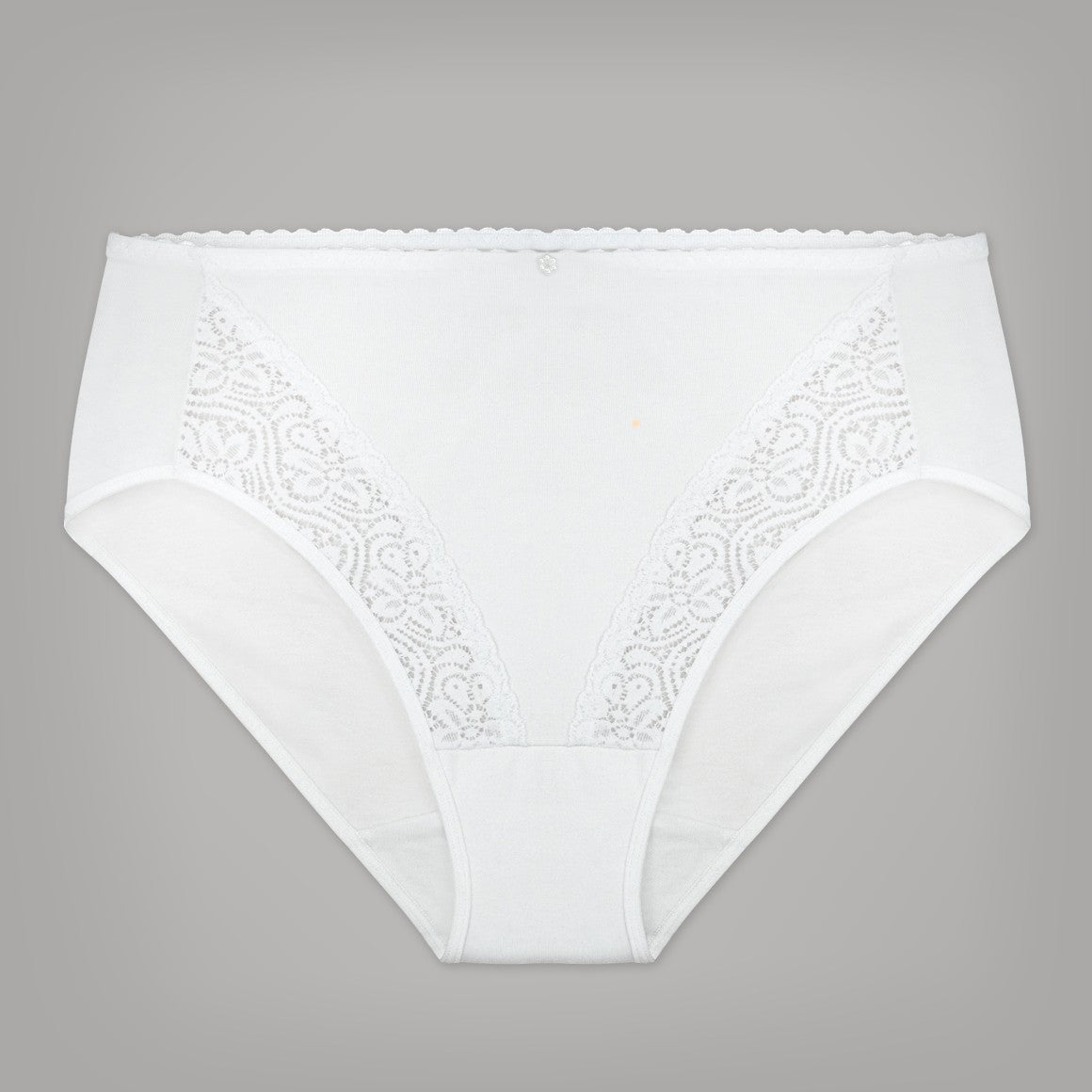 Panty con talle alto y cobertura completa. elaborado de algodón elastano y encaje en los laterales de la parte frontal, elástico suave en pierna y cintura. puente inferior de algodón para mayor frescura.