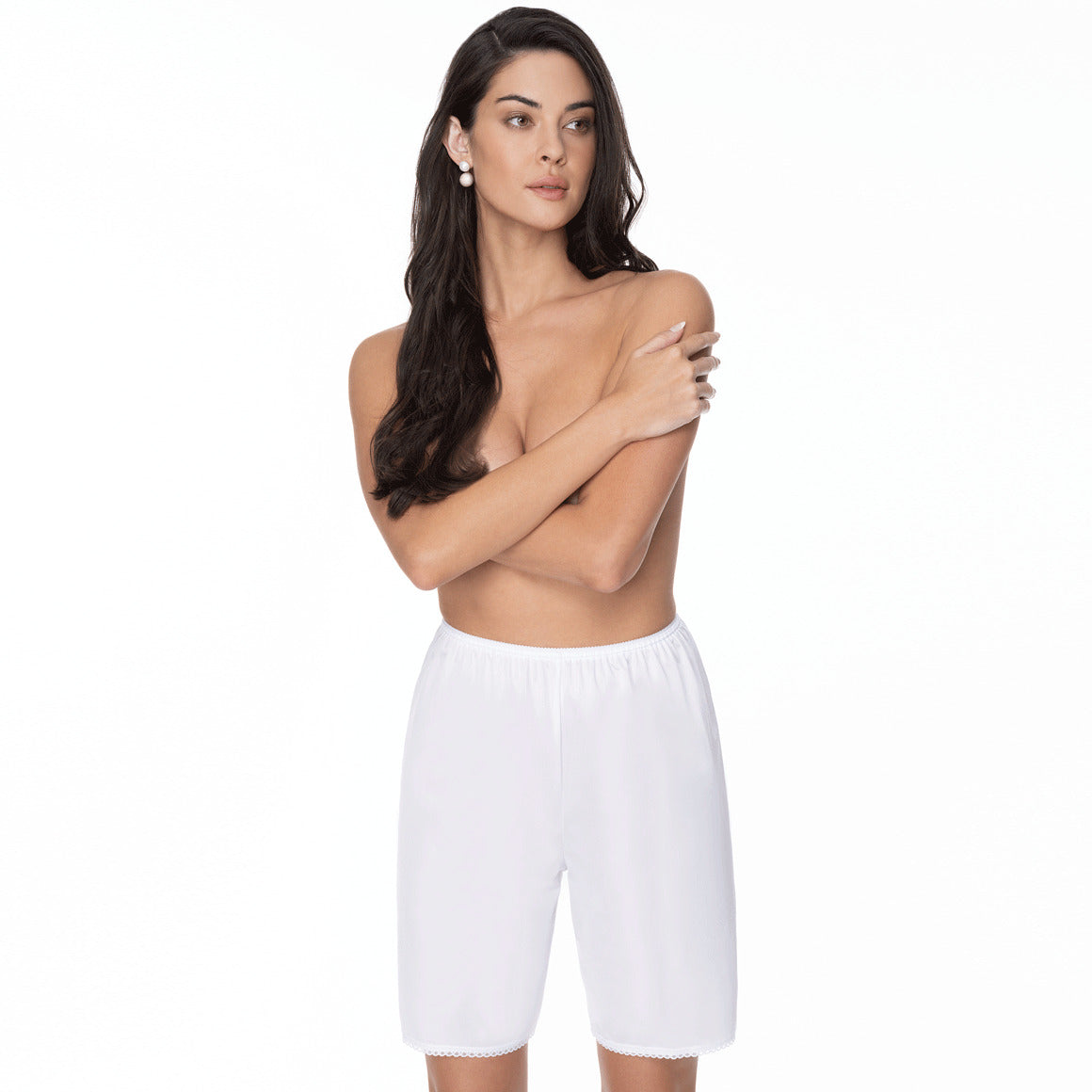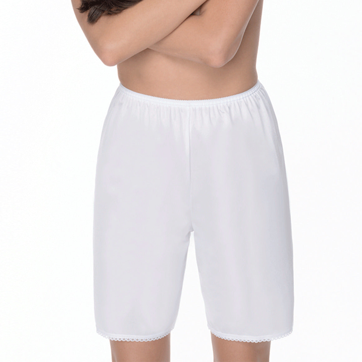 Saya pantalón con talle alto. elaborado de nylon, elastico en cintura para un mejor ajuste y con detalles de encaje en el ruedo.
