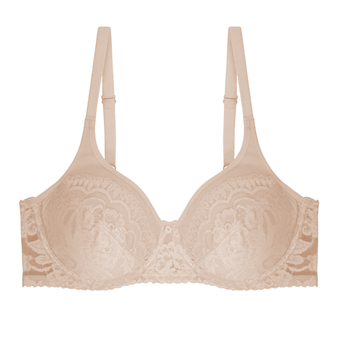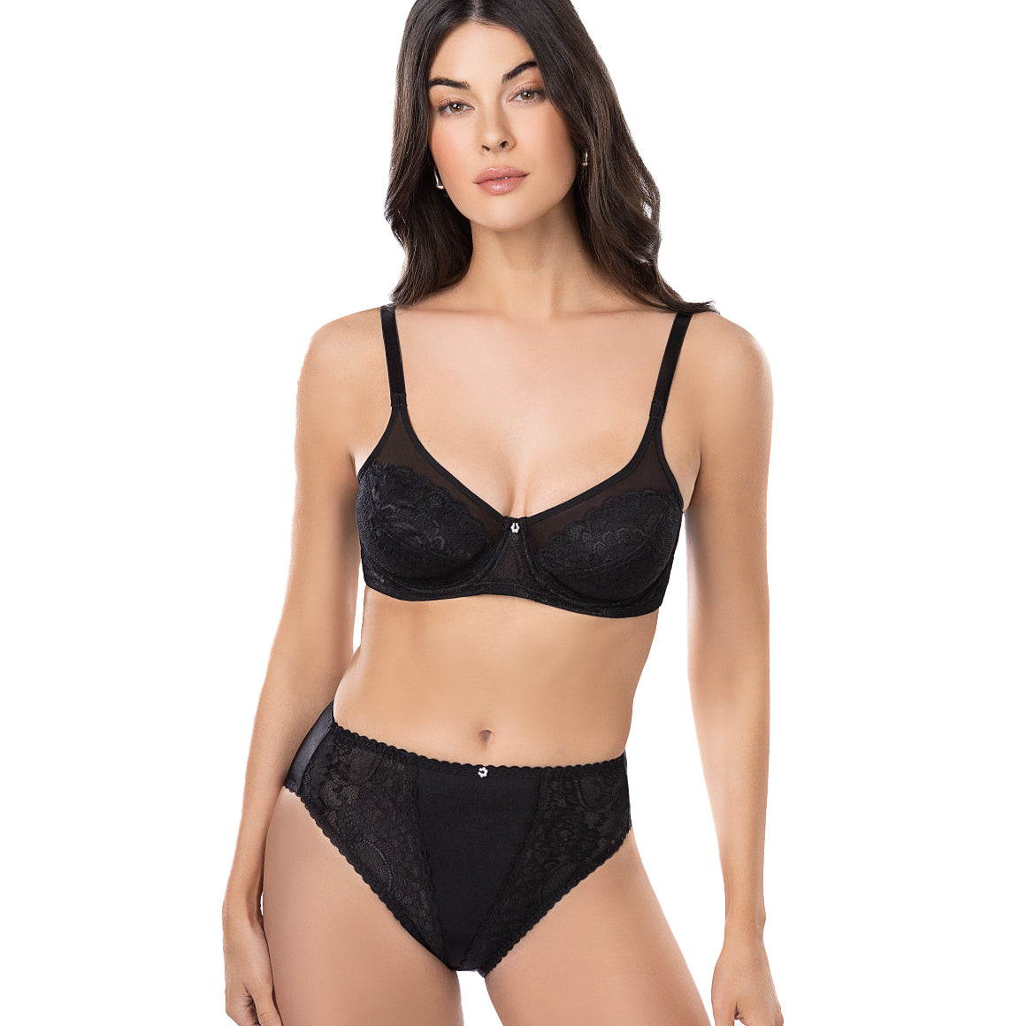 Brasier con aros, copas sin realce. banda media con elástico para un mejor ajuste, broche de dos ganchos y tres niveles de ajuste, con tirantes anchos regulables. elaborado de spandex en la banda posterior, encaje en la parte frontal y en copas.